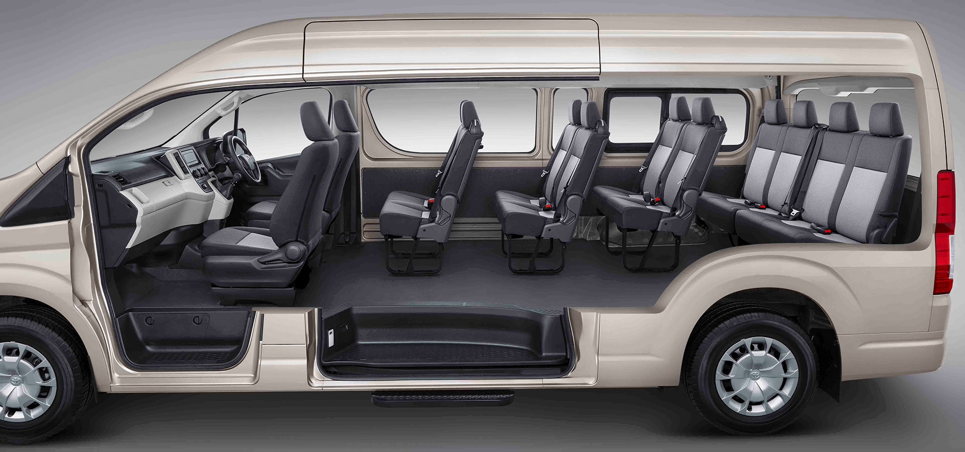 kabin yang lebih nyaman dan mewah dari All New Hiace Premio semakin memanjakan penumpang sepanjang perjalanan